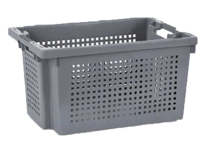 | 2502 | Bac fond plein et parois ajourées avec poignées passantes | L.600, l.400, h.320 mm | 55 Litres | Gris | 2,050 Kg | |